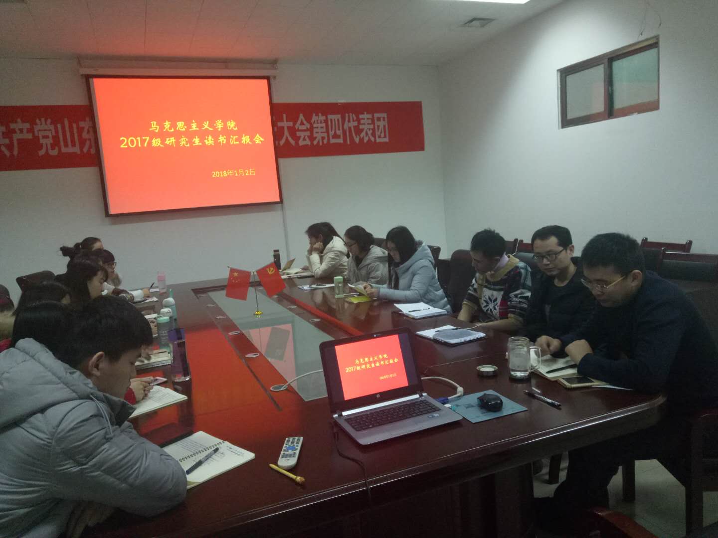 1�2日下午,马克思主义�院举办�2017级研究生读书汇报会”,汇报会由副院长赵付科主持�2017�13名研生同学参加�