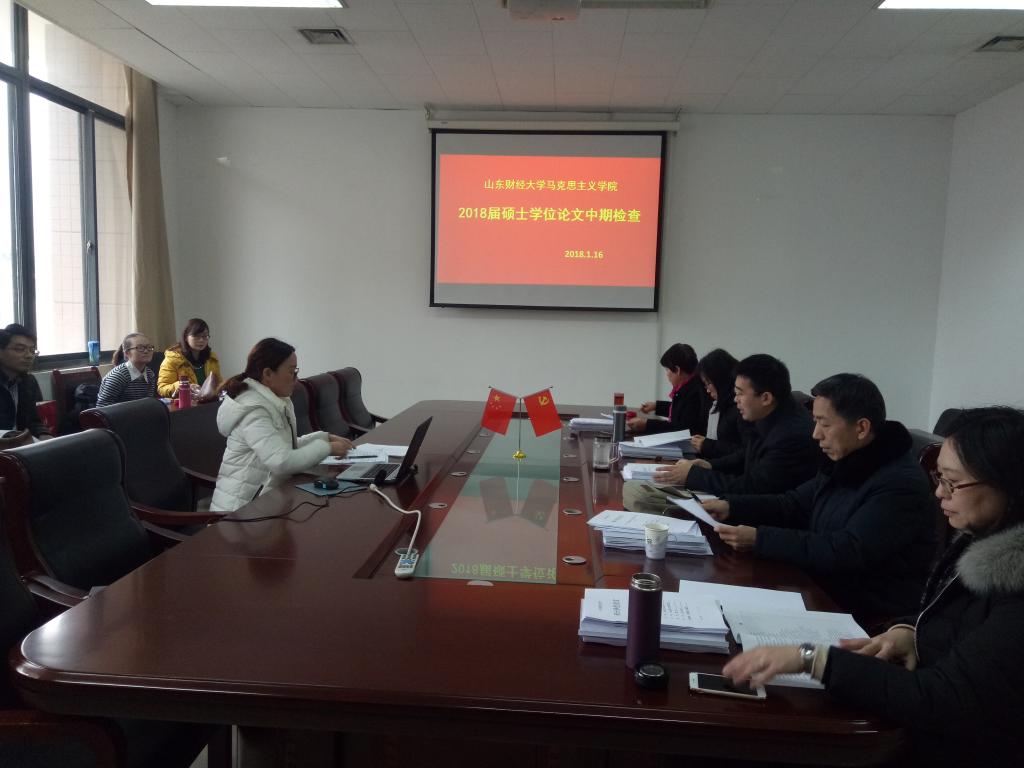 ��时了解和掌握��2018届硕士学论文的进展情况,保证学生顺利完成毕业论文设计任务,根�我校研究生院硕士学论�工作进程安排。我院于1�16日,�图书�606室举�2018届硕士学位论文中期检�。中期检查小组组长为我院副院长赵付科教授,成员有蔺淑英教授、毛玉美教授、朱玉周副教授、王敏副教授。在组长赵付�教授的主持下,会议严格按照程序行�