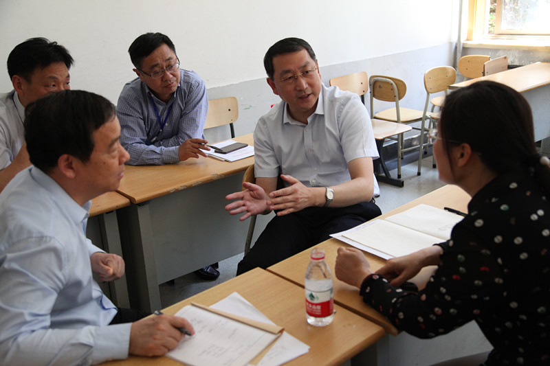 上午9�30分许,关志鸥与校党委书记王邵军、校长赵忠秀等进行了座谈。王邵军汇报了学校自2011年合并组建以来的发展建设情况,当听到学校在学科建设、人才队伍建设、思想政治工作、思政课教学改革、主校区建设等方面取得的成绩时,关志鸥给予充分肯定。他说,学校坚持和加强党对高校的全面领导,坚持走内涵式发道路,为山东经济社会发展提供了有力的智力支持和人才支撑。今后,要紧密对接山东经济社会发展需求,努力为山东新旧动能转换重大工程、乡村振兴战略等作出新的更大的贡献�