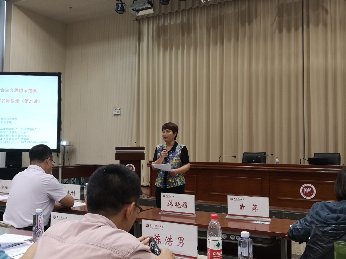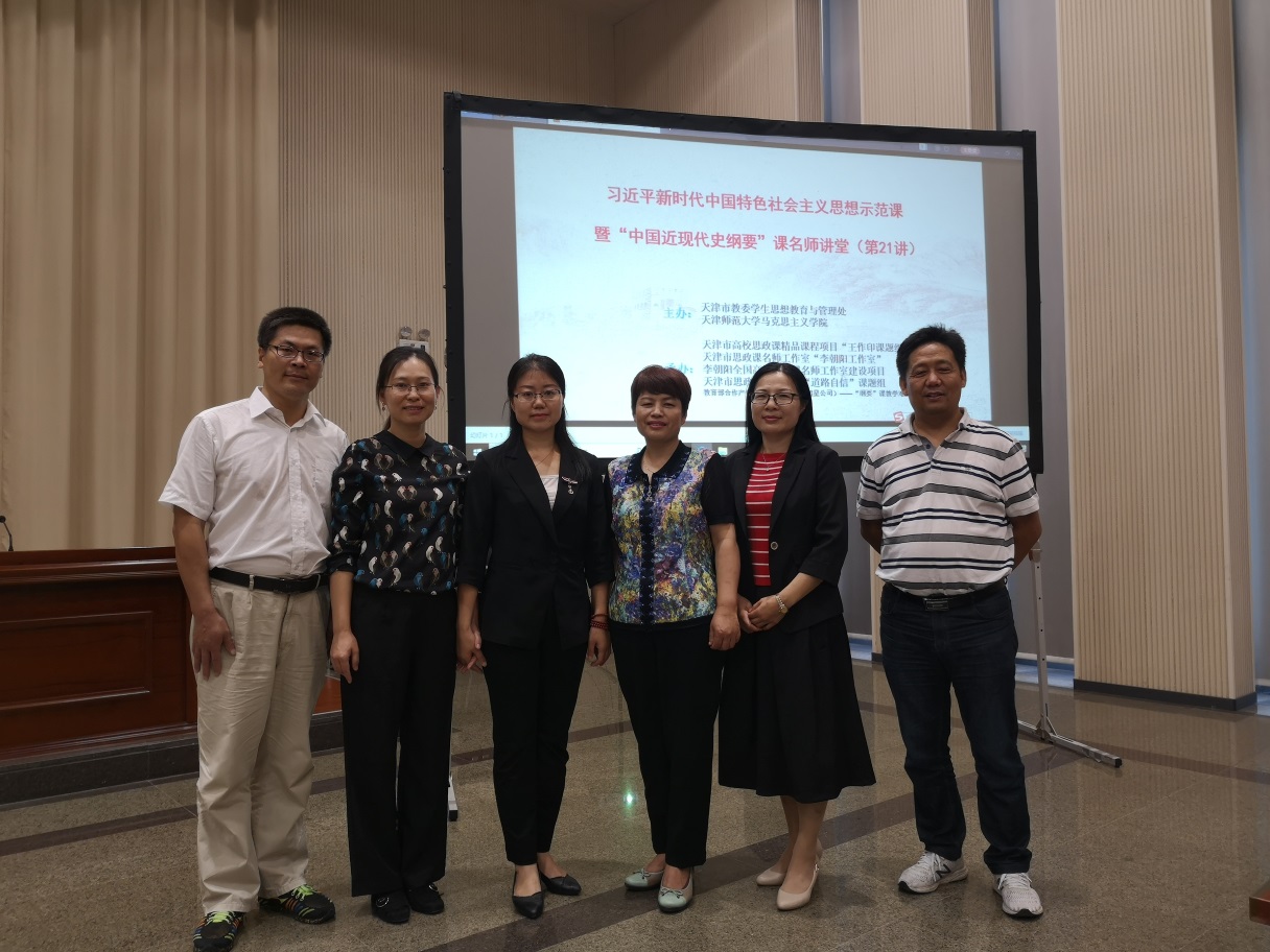 本次活动,应邀展示的均为在全国或天津市教学比赛中获奖的优秀教师。来自绵阳师范学院的韩晓娟主讲“戊戌变法失败的原因和历史启示”,天津外国语大学的郑海呐主讲“中国特色社会主义文化”,天津师范大学的于江涛主讲“科学评价历史伟人毛泽东”,天津职业大学的陈浩男主讲“培育和践行新时代文化自信”,天津城建大学的屈彩霞主讲“新民主主义革命道路与井冈山精神”,天津工业大学的杨永利主讲“供给侧结构性改革”。期间,绵阳师范学院韩晓娟、天津师范大学李朝阳两位专家分别做了《强化“三三三”教学体系,打造“六味”课堂,增强思政课实效性》、《“三入八讲”法在思政课教学中的运用》为主题的教学经验介绍。另外,我院毛玉美教授参与了会议的主持人与点评工作。这些优秀教师的教学展示体现了新时代思政课的思想性、理论性和亲和力、针对性的有机统一,参会的老师们一致认为此行收获很大。�议结束后,我院教师还参观了天津师范大学马克思主义学陀�