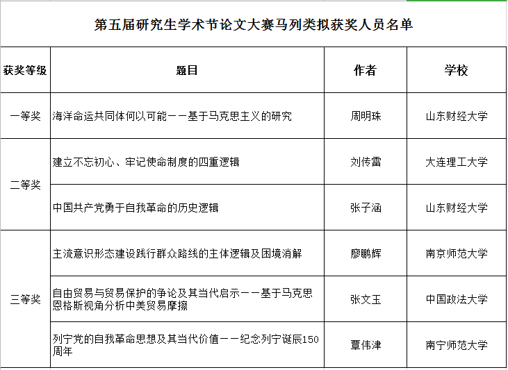 2020骞�6鏈�5鏃ワ紝灞变笢璐㈢粡澶у绗簲灞婄爺绌剁敓瀛︽湳鑺傜郴鍒楀ぇ璧涙嫙鑾峰鍚嶅崟鍏ず锛屾垜闄�18绾ф濇兂鏀挎不鏁欒偛涓撲笟鍛ㄦ槑鐝犲悓瀛︾殑璁烘枃銆婃捣娲嬪懡杩愬叡鍚屼綋浣曚互鍙兘鈥斺斿熀浜庨┈鍏嬫濅富涔夌殑鐮旂┒銆嬪枩鑾疯鏂囧ぇ璧涢┈鍒楃被涓绛夊锛�18绾ч┈鍏嬫濅富涔変腑鍥藉寲鐮旂┒涓撲笟寮犲瓙娑电殑璁烘枃銆婁腑鍥藉叡浜у厷鍕囦簬鑷垜闈╁懡鐨勫巻鍙查昏緫銆嬪枩鑾疯鏂囧ぇ璧涢┈鍒楃被浜岀瓑濂栵紝杩欐槸瀵逛粬浠鏈啓浣滃姛搴曠殑鑲畾鍜岄紦鍔憋紝鍚屾椂涔熸縺鍙戜簡鎴戦櫌鐮旂┒鐢熸姇韬鏈啓浣溿佽繘琛屽鏈爺绌剁殑绉瀬鎬с�