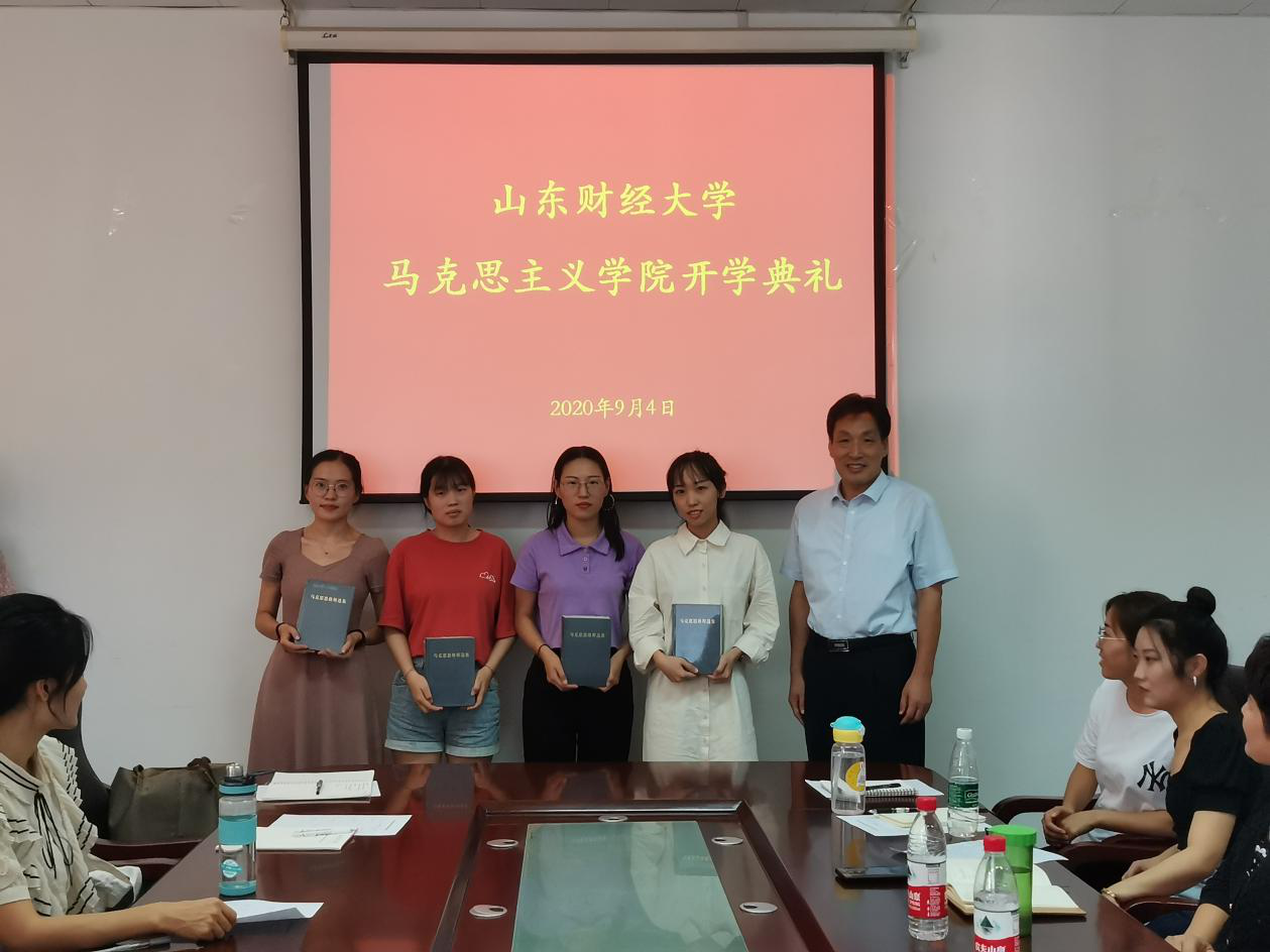 2020�9�4日,山东财经大学马克思主义学院于图书�606会议室举行了2020级硕士研究生开学典礼。学院党委书记郄捍烈、院长沈大光、副院长徐莹、教授毛玉美、学工�主任高小燕�2020级全体研究生参加了典礼。开学典礼由徐莹老师主�