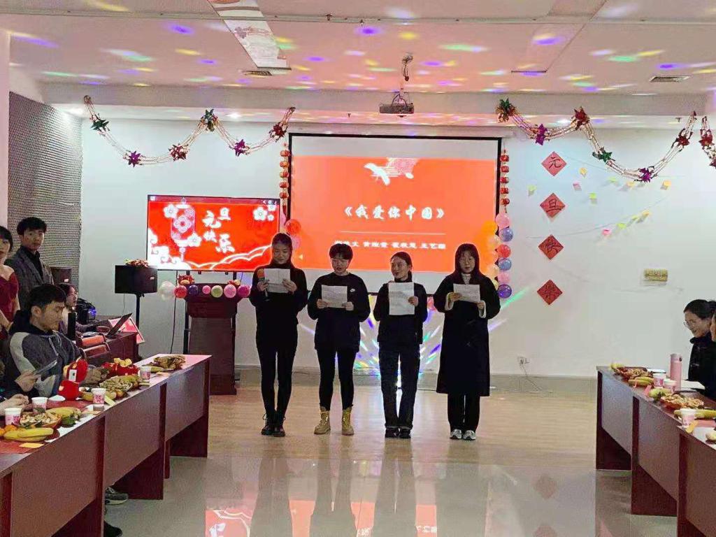 为增强学院的凝聚力和向心力,丰富学院师生的文化生活。马克思主义学院于2020�12�28日晚�613会议室举办“诵经典 迎新�--暨红色文化传承元旦晚会”。学院党委�记郄捍烈、院长沈大光、学院党委副书记王恩娟、副院长张高臣、副院长徐莹、硕士研究生导师以及部分教师代表应邀出席,与我院全体研究生欢聚一堂,共同接新年的到来�