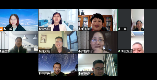 5�12日晚,学院召开期中教学检查教师线上座谈会。徐莹院长、王敏副院长、侯继迎副院长以及闫杰、王广、许艳华、李国选、王曼五位教学部主任和硕士研究生导师代表毛玉美教授、陈太明老师参会。参会老师就本学期本科和研究生各课程线上教学情况进行总结,充分交流了线上教学的经验和做法,并对实际教学和学生培养工作中的问题和难点进行剖析。会上各位老师各抒己见、会议气氛热烈,参老师们为下一步更好开展本科和研究生教学工作积极献计献策。徐莹院长做会议总结,充分肯定了老师们的工作态度和工作成绩,并对学院整体教学工作进行指导,指明了下一步学院教学工作的重点和方向�