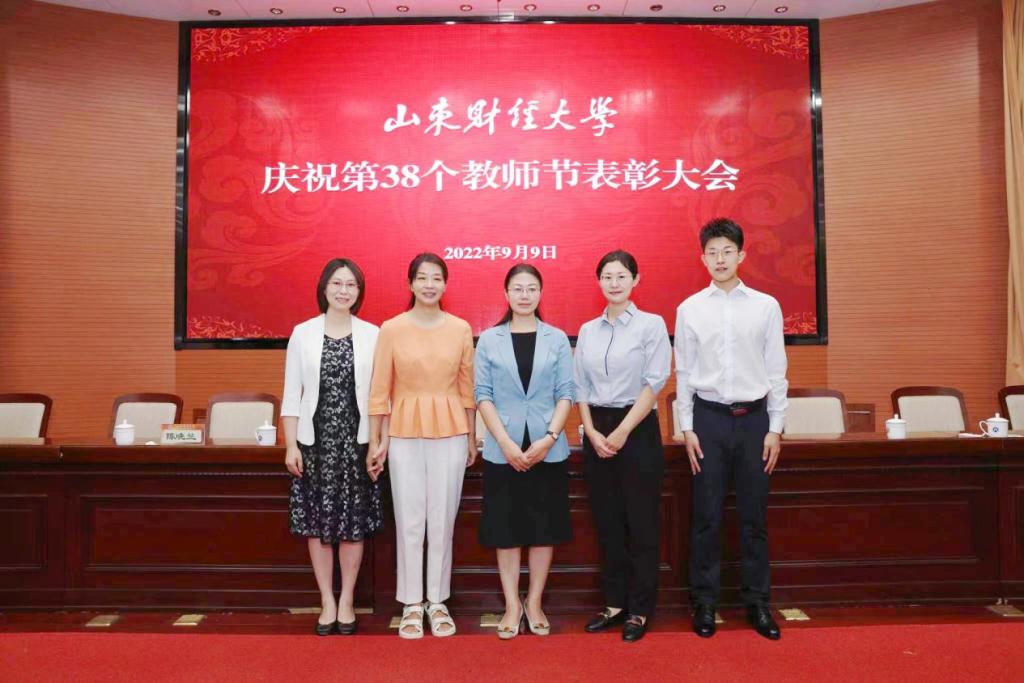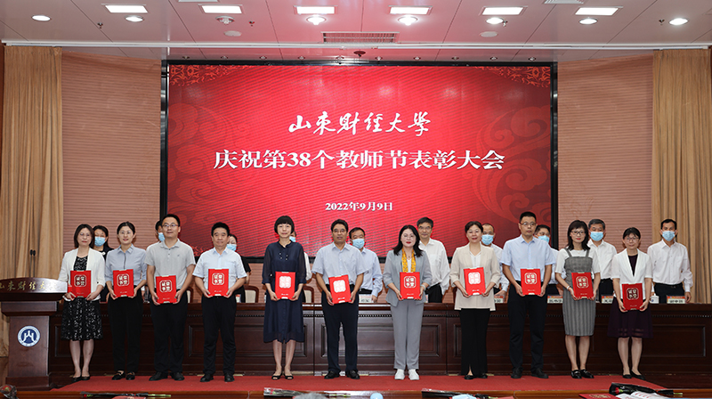 在表彰会上,我院多位教师获得表。王邵军教授获“山东省智库高端人才”称号以及所主持《实践思政:新时代高校立德树人理念的创新探索与改革实践》获山东省第九届教学成果奖(高等教育类)特等奖、所著《生命的思与诗:冯至的人生与创作》获山东省第三十五届社会科学优秀成果奖一等奖、所著《关于区块链与山东实体经济深度融合的对策建议》获第一届山东省人民政府决策咨询奖研究成果奖二等奖表彰;沈大光教授主持的《高校思政育人“三平台”模式构建与实践》获山东省第九届教学成果奖(高等教育类)一等奖表彰;王静获第二届全国高校思想政治理论课教学展示暨优秀课程一等奖表彰;王敏获首届全省学校思政课教学设计大赛特等奖以及山东财经大学2022年教学名师表彰;侯继迎获首届全省学校思政课教学设计大赛二等奖表彰;刘炜获�2022年从事高等教育工作满30周年以上在职教职工”表彰;陈爽获“山东财经大�2022年度优秀教师”表彰;郭小丽获“山东财经大�2022年度优秀教育工作者表彰”;蔺淑英获山东财经大学2022年师德师风先进个人表彰�