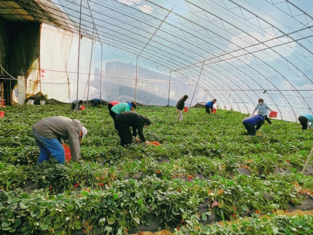 开展采摘草莓活动�3�11日上午,学院工会组织开展了采摘草莓活动。教师们排队有序进入草莓大棚,团结互助式的传递装盛草莓的纸箱。在进入到郁郁葱葱的草莓大棚内之后,教师们既小心又兴奋。教师们一边小心翼翼地采摘着草莓,以防路边的草莓被践踏;一边又体验着丰收采的乐趣。在回去的路上,教师们品尝着自己采摘的果实,有说有笑,好不欢喜�