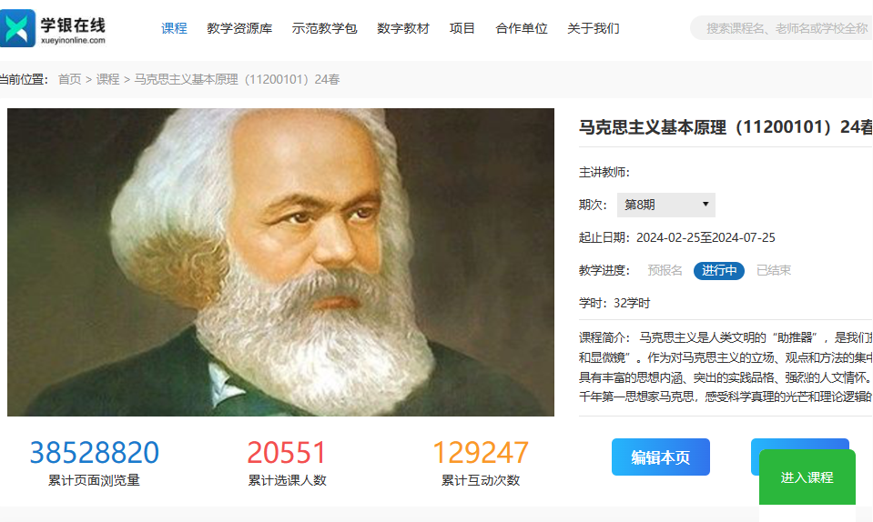 办好思想政治理论课关键在教师。”课程团队群策群力,整合教材内容,制作完成�一套完整的在线教学课程体系。目前,网上课程视共计63个,总时�849分�;课件76个,文档资源22个,测验习题12� 1200 道题,每学期更新完善 10%�开课以来�面向校内外学生完成七学期教学�校内外累计选课 超过2万人,累计有18所学校使用本课程�课程荣获2023年校级学创新三等奖1项,在《高校马克思主义理论教育研究》《教育评论》等发表教改论文多篇�