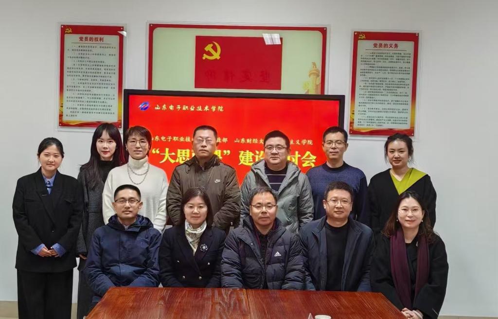 为深入学习贯彻习近平总书记关于思想政治理论课和高校马克思主义学院建设的一系列重要指示�落实《关于加强新时代马克思主义学院建设的意见》、《全面推进“大思政课”建设的工作方案》、《山东省大中小学思政课“双协同、双提升”项目工作方案》等文件要求,促进高校思政课教师之间的学习交流。山东财经大学马克思主义学院与山东�子职业技术学院思政部于12�3日联合举办�大思政课”建设研讨会。马克思主义学院党委书记刘国强,院长徐莹,副院长王敏、侯继迎,山东电子职业技术学院思政部主任张同胜,副主任何嘉,两校思政课教研室主任及青年教师代表参加了研讨会�