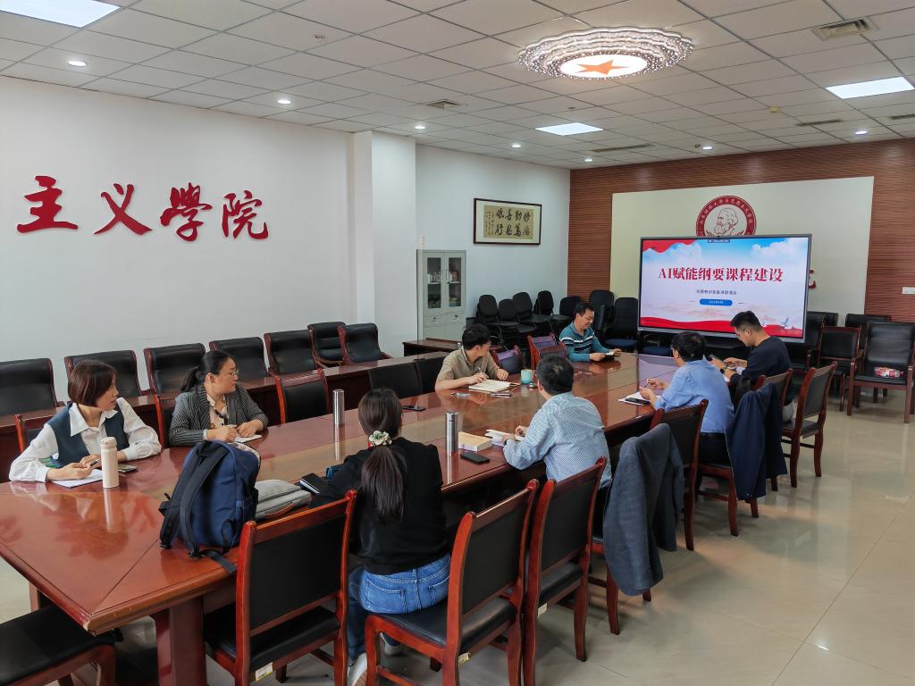 2025�4�24日下午,马克思主义学陀中国近代史纲要》教研室在学�606室成功举办集体备课暨磨课会。教研室主任李国选老师主持会议,与会教师围绕“AI赋能纲要课程建设”主题展开深入研讨�