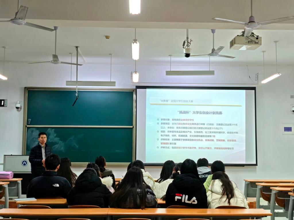 讲座伊始,张建老师聚焦“创青春”全国大学生创业大赛中国“互联网+”大学生创新创业大赛,进行重点解读。他指出,这两项赛事旨在激发大学生的创新精神和创新创业能力,搭建大学生创新创业展示交流、资源对接的平台,助力高校人才培养和创新型国家建设。针对参赛项目要求,他强调了项目须具备创新性、可行性、会效益与经济效益兼具等核心要点。在参赛项目类型上,他详细列举了科技创新、乡村振兴、社会公益等多个热门方向,拓宽同学们的参赛视野�