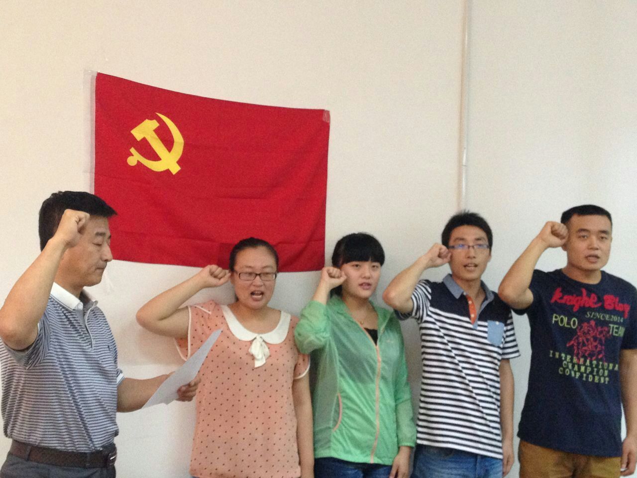 鍦ㄩ矞绾㈢殑鍏氭棗涓嬶紝澶у搴勪弗瀹h獡锛氣滄垜蹇楁効鍔犲叆涓浗鍏变骇鍏氾紝鎷ユ姢鍏氱殑绾查锛岄伒瀹堝厷鐨勭珷绋嬶紝灞ヨ鍏氬憳涔夊姟锛屾墽琛屽厷鐨勫喅瀹氾紝涓ュ畧鍏氱殑绾緥锛屼繚瀹堝厷鐨勭瀵嗭紝瀵瑰厷蹇犺瘹锛岀Н鏋佸伐浣滐紝涓哄叡浜т富涔夊鏂楃粓韬紝闅忔椂鍑嗗涓哄厷鍜屼汉姘戠壓鐗蹭竴鍒囷紝姘镐笉鍙涘厷銆傗�