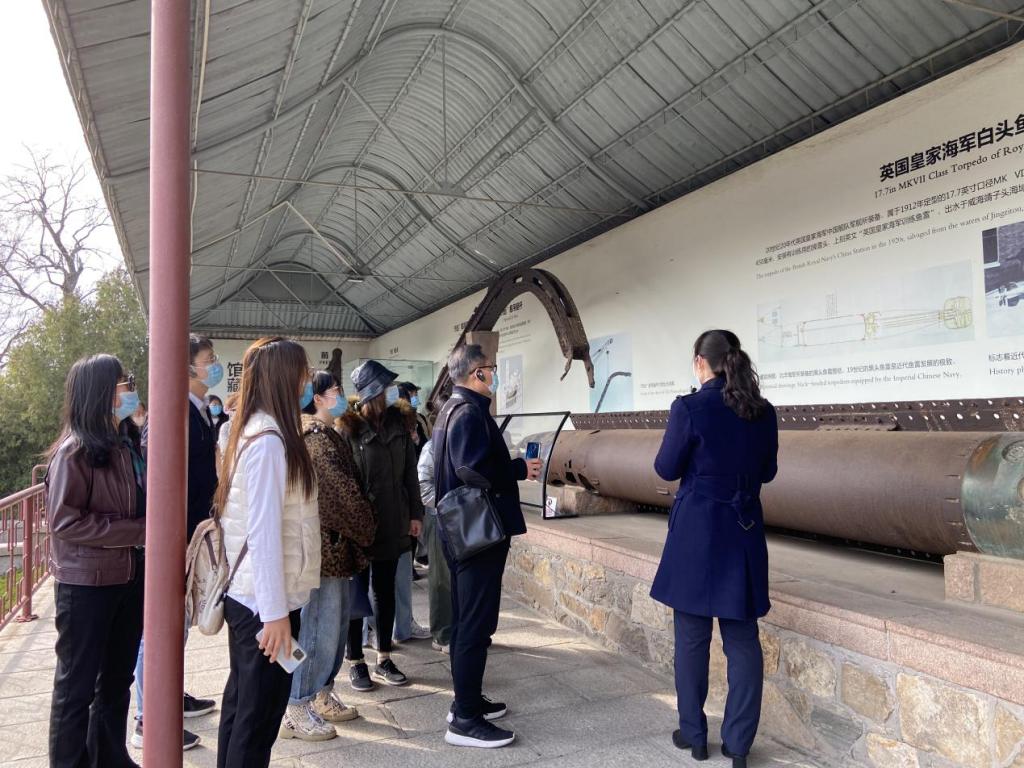 师生乘坐观光车抵达甲午战争陈列馆,在这里见证了北洋海军的成军和覆没,见了中日甲午战争的悲壮和创痛,见证了威海卫被英国强� 32 年的国耻和民辱。该馆分为“战前的中国和日本”“日本打开战争魔盒”“民族屈辱与抗争”“殇思厅”四个部分,通过实地参观、现场讲解和互动交流,触发了师生的悲愤和警醒�
