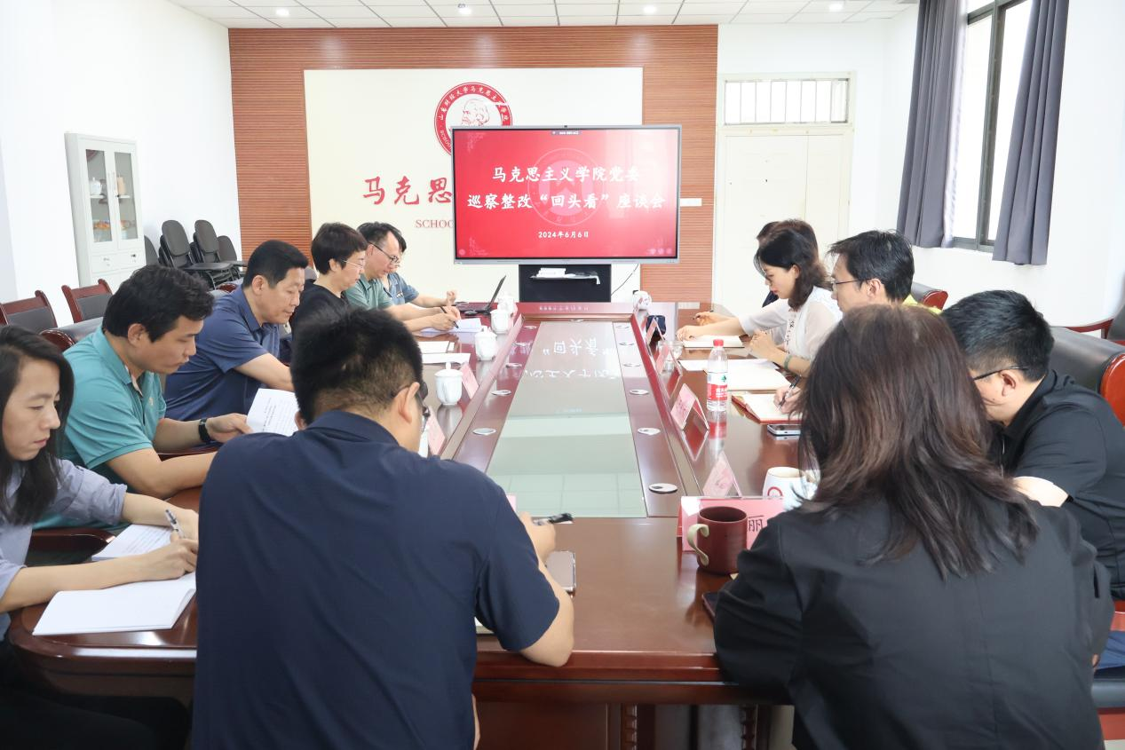 6�6日下午,校党委�察整改“回头看”工作组在图书馆606会议室召开座谈会,工作组成员、学院领导班子成员参加座谈会。会议由学院党委书记石伟主持�