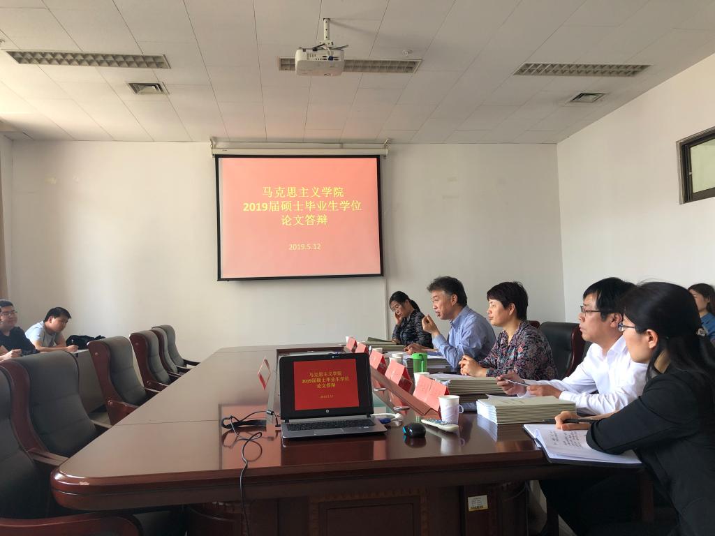根据学校研究生院硕士学位论文工作进程安排�5�12日,我院在图书馆606室举�2019届硕士学位论文答辩。答辩主席为济南大学马克思主义学院院长文洪朝教授;答辩委员有:刘长明教授、毛玉美教授、蔺淑英教授、张高臣副教授;答辩秘书为:乔德博。在文洪朝教授的主持下,会议严格按照程序进行。首先参加答辩的硕士研究生向各位老师汇报了硕士学位论文的主要内容以及创新点,各位老师逐一提出了问题和不足,并就下一步如何完善提出了切实中肯的建议。随后针对答辩委员会提出的问题,2019届硕�研究生进行了详细回答。最后,答辩委员会宣布本次答辩的结果并给出优秀论�名单�