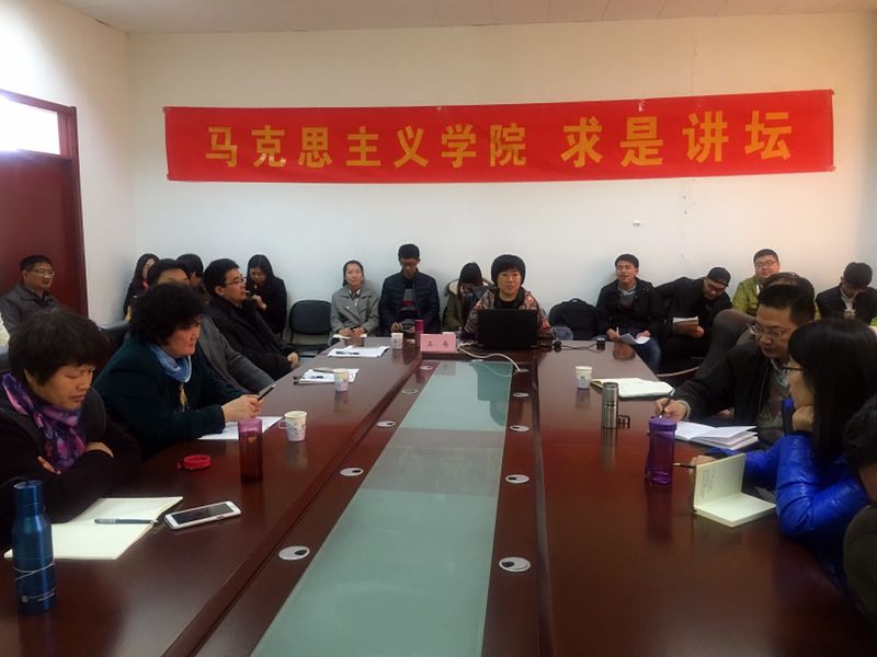 3�28日下午,中国人民大学马克思主义学院副院长、博士生导师王易教授做客我院“求是讲坛”,并作了题为《基于大�生理论热点难点的思想政治理论课研究型教学探索》的报告。院长沈大光、副院张高臣以及部分老师、研究生共计50余人参加报告会。报告会由副院长赵付科主持�