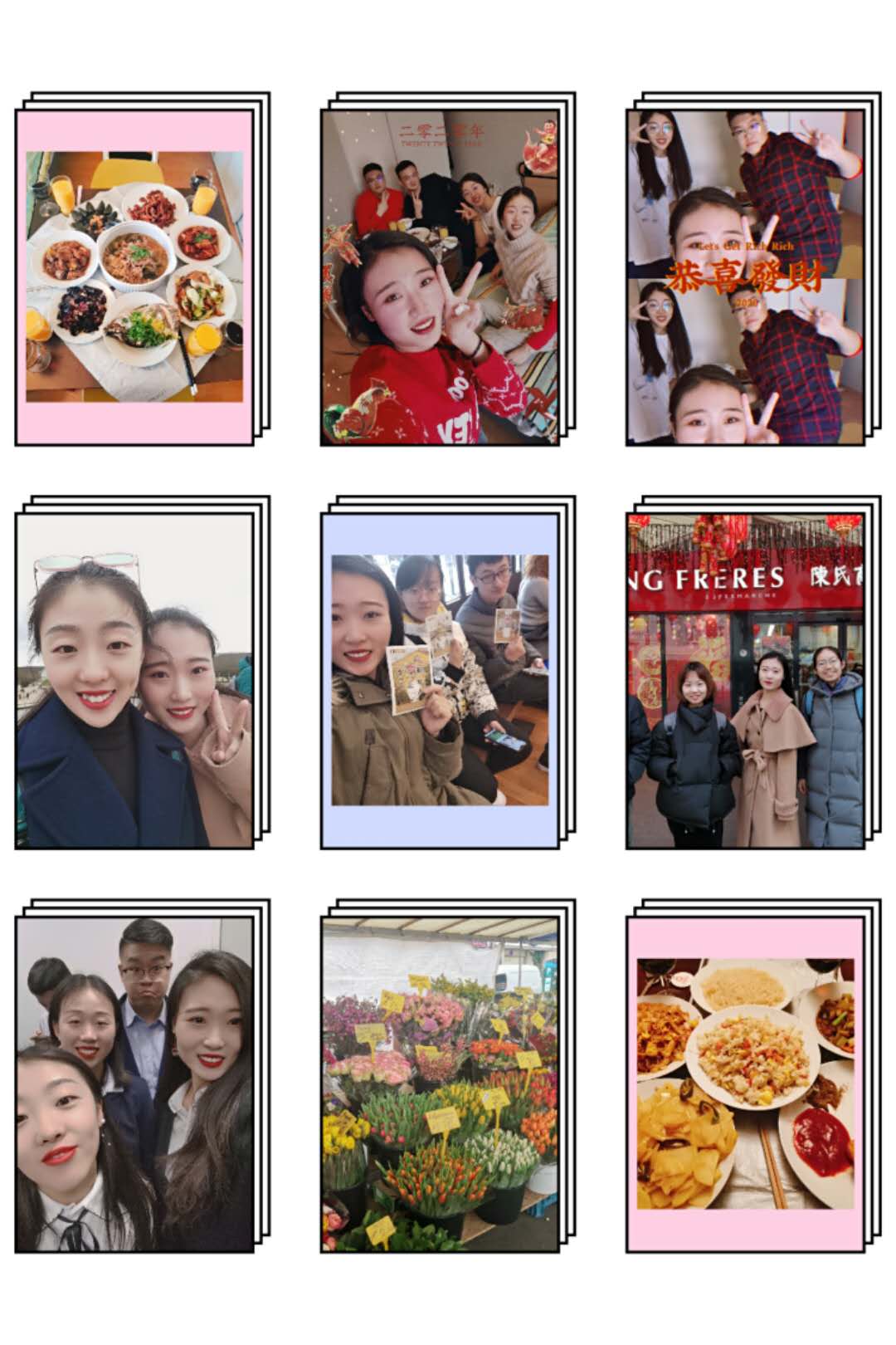 离开了家、离开了祖国,我们并不孤单�90天的记忆里��30位访学团成员给彼此留下了难忘的记忆。从出发前的“生人”到现在的“老铁”,我们收获的不只是知识、眼界,还有更重要的友谊。我的舍友是来自金融学院的王文文,第一次见到她就觉得莫名投缘,接触后发现我们两人在很多方面很相像,活泼开朗的性格,爱收拾整理房间的习惯,重要节日一定要创造仪式感……还有许多互补的地方,我喜欢做饭,文文更愿意刷碗。还有保险学院的天津男孩“老佟”,煎饼果子、红烧肉都是他的拿手菜,大年三十的那天晚上,我们和国贸学院的庄园一起包饺子,和外语学院的艳梅、延姣共品红酒。第一次过年不在家人身边,但因为有这些朋友,也充满了幸福感。同学们的厨艺在这三个月得到了很大的提升,回家后,也能让父母家人尝尝自己的手艺了�