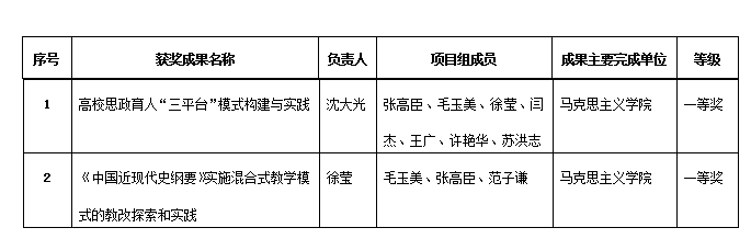 涓哄強鏃舵荤粨鍏堣繘鏁欒偛鏁欏缁忛獙锛屼績杩涗紭绉鏁欏鎴愭灉鍦ㄥ疄闄呮暀瀛﹀伐浣滀腑鐨勫簲鐢ㄥ拰杞寲锛屽鏍$粍缁囧紑灞曚簡2020骞村害鏍$骇鏁欏鎴愭灉濂栬瘎瀹″伐浣溿傚湪鍚勫崟浣嶇敵鎶ユ帹鑽愮殑鍩虹涓婏紝缁忎笓瀹惰瘎瀹★紝鍏辩‘瀹氱壒绛夊6椤癸紝涓绛夊10椤癸紝浜岀瓑濂�20椤广傛垜闄㈡矆澶у厜鏁欐巿鐢虫姤鐨勩婇珮鏍℃濇斂鑲蹭汉鈥滀笁骞冲彴鈥濇ā寮忔瀯寤轰笌瀹炶返銆嬨佸緪鑾规暀鎺堢敵鎶ョ殑銆�<涓浗杩戠幇浠e彶绾茶>瀹炴柦娣峰悎寮忔暀瀛︽�″紡鐨勬暀鏀规帰绱㈠拰瀹炶返銆嬮兘鑾峰緱2020骞村害鏍$骇鏁欏鎴愭灉濂栦竴绛夊銆傝繖鏄垜闄㈤娆″湪鏁欏鎴愭灉濂栬瘎閫夋柟闈㈢殑绐佺牬锛屼篃鏄椹櫌鏁欏鏀归潻鎴愮哗鐨勮偗瀹氥�