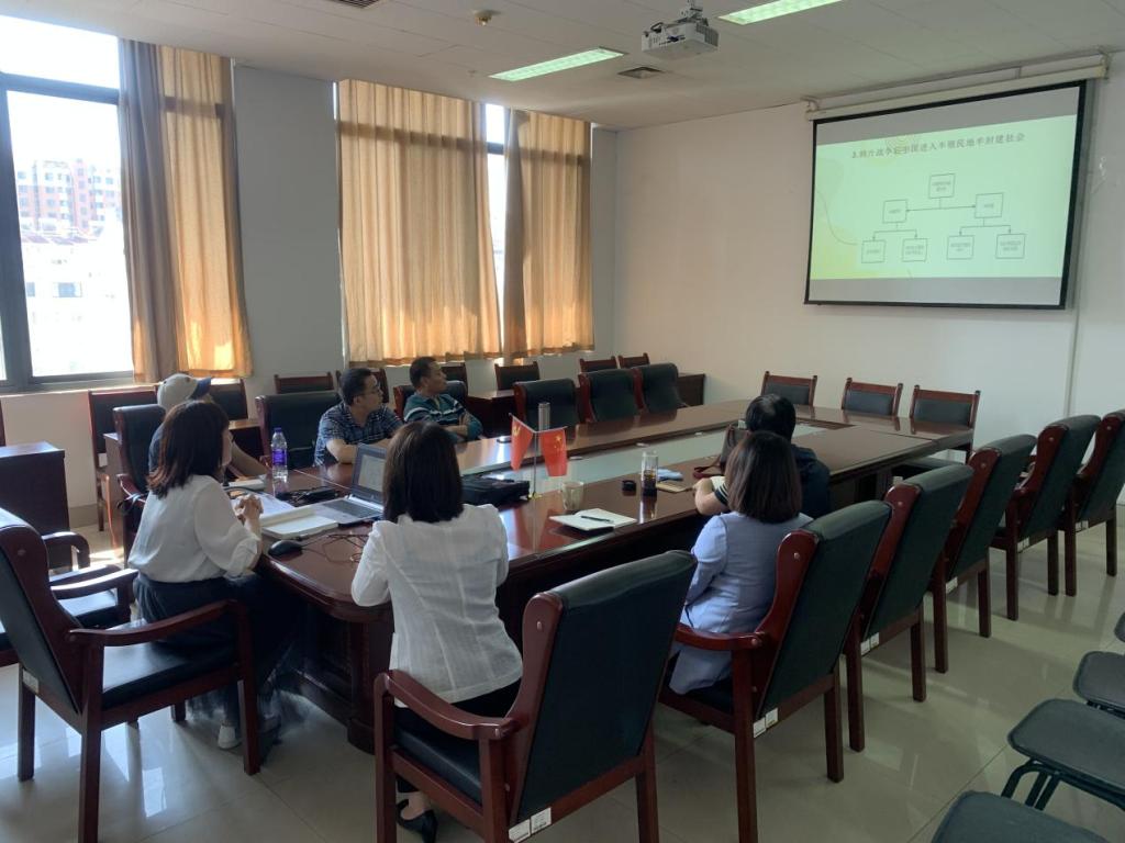 秋高气爽,金风怡人,丹桂飘香。马克思主义学院在金色九月迎来第一场“磨课”会�9�22日,纲要部组织新进教师在学院606会议室开展了一场内容充实、效�突出的“磨课”练兵活动。此次活动的主讲人是朱维霞博士,主要参与教师有纲要部李国选主任、毛玉美教授、王利文副教授以及包善良老师。同时,徐莹院长、王敏副院长也在百忙之中抽出时间参加本次活动并做出精彩点评�