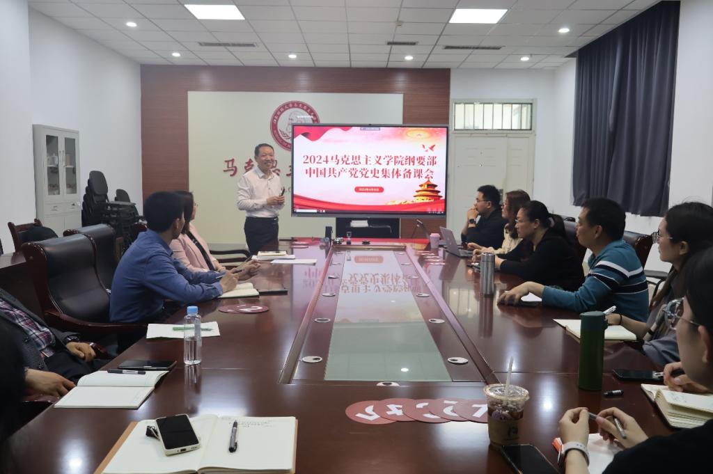 2024�4�11日下午,院再在606会议室召开了《中国共产党党史》集体备课会。会议由纲要部李国选主任主持,学院领导与部分教师参加此次集体课会�