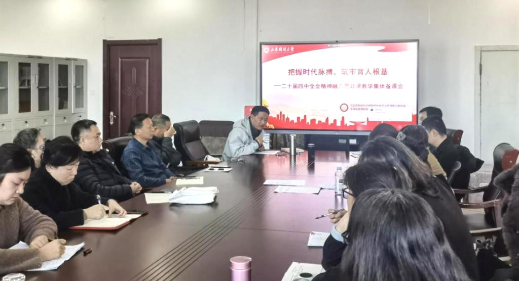 为深入贯彻党的二十届四中全会精神,系统推进党的创新理论有机融入思政课教学体系,11�27日下午,马克思主义学院习概论教研室与毛概论教研室于学�616会议室举办“二十届四中全会精神融入思政课”集体备课会暨青年教师磨课活动,活动由习概论教研室王暖春�持�